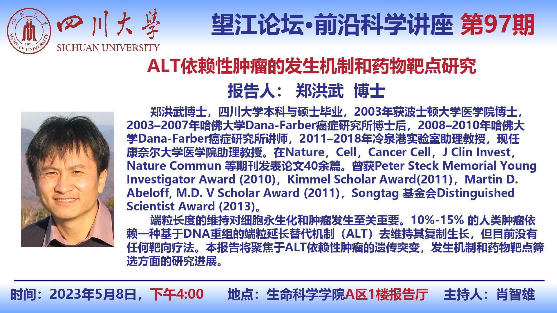 望江论坛-前沿科学讲座(第97期):郑洪武博士5月8日学术报告
